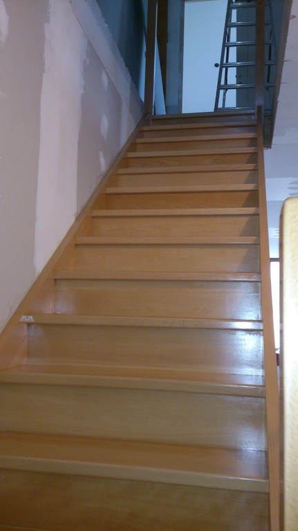 Pour les mains courantes, nous appliquons deux couches de lasure et une couche de vitrificateur.