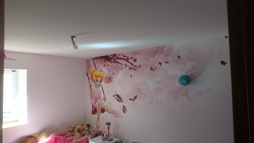 Nous réalisons aussi la pose de lés de papier peint ou de stickers sur un mur en peinture.